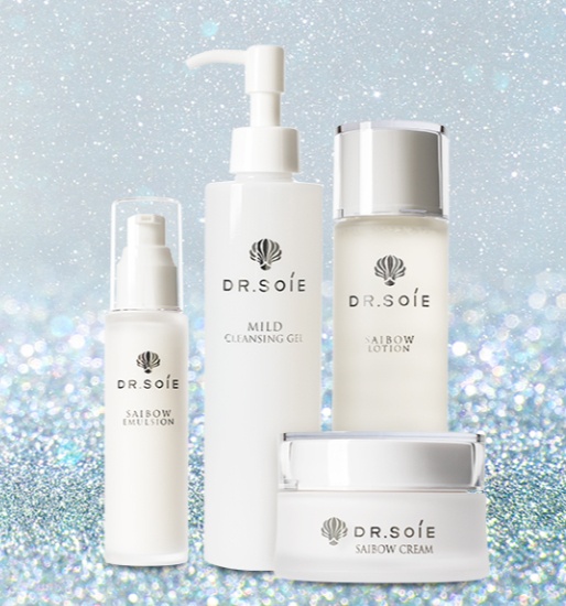 美容皮膚科の治療から生まれたSAIBOWシリーズヒト幹細胞エキスと植物幹細胞エキスをダブルで配合③ローション浸透力の高い美容液レベルの化粧水④エマルジョン細胞修復にこだわった乳液⑤セラムたるみ治療に使われるDMAE高配合⑥クリームDMAE配合、高保湿クリーム